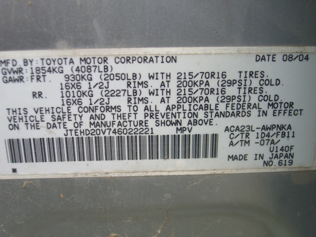 VIN: JTEHD20V746022221